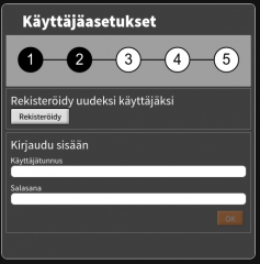 Nyt käyttäjäasetusikkuna on avautunut. Mikäli et ole rekisteröitynyt, niin paina ''rekisteröidy'':