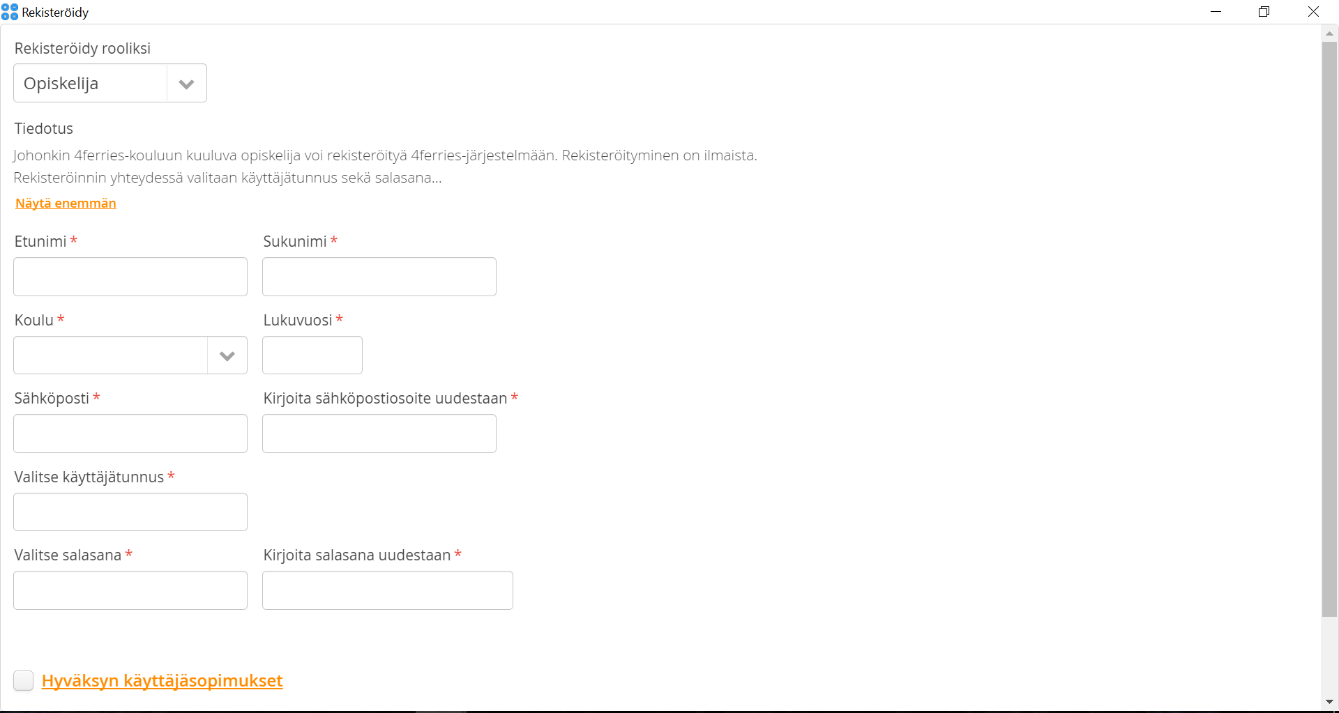 Nyt sinulla on rekisteröitymisikkuna avonaisena. Täytä tietosi ja paina ''rekisteröidy'':